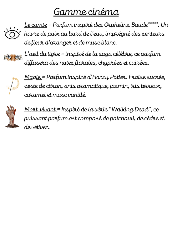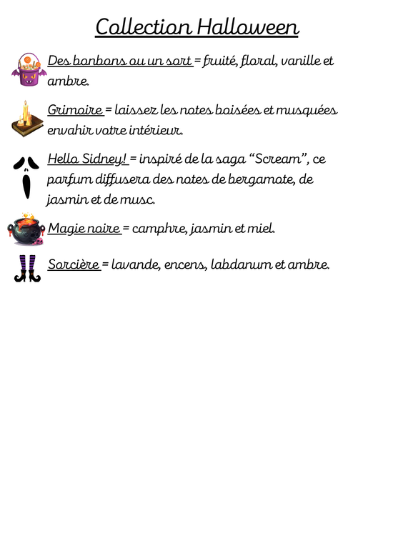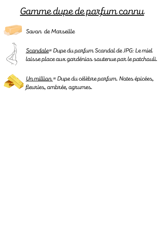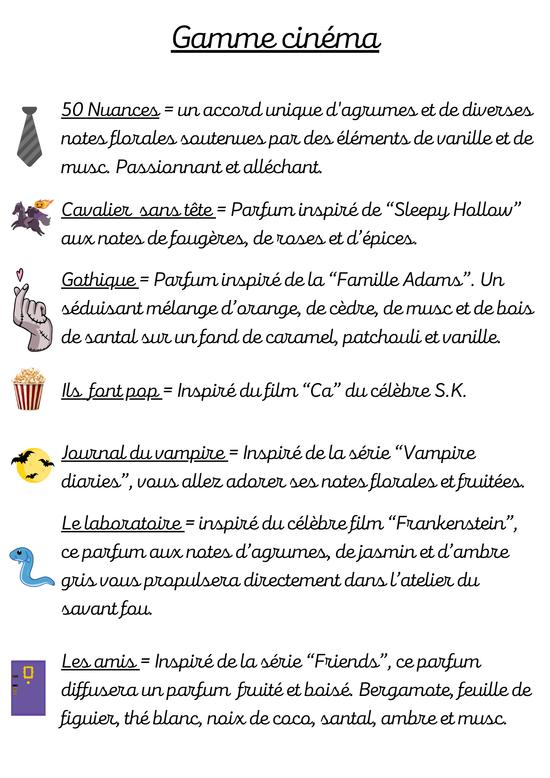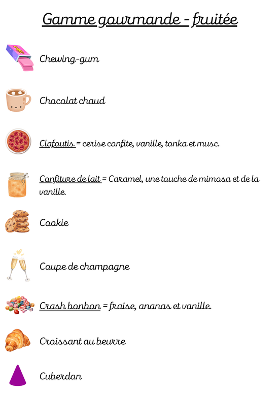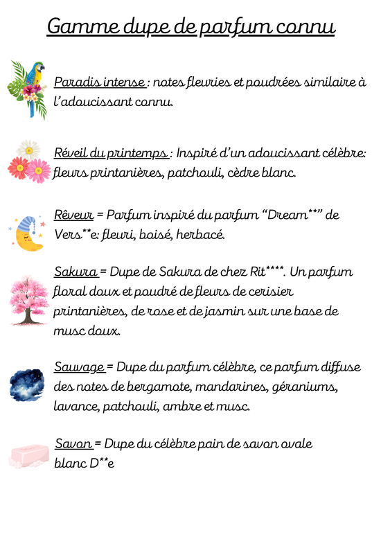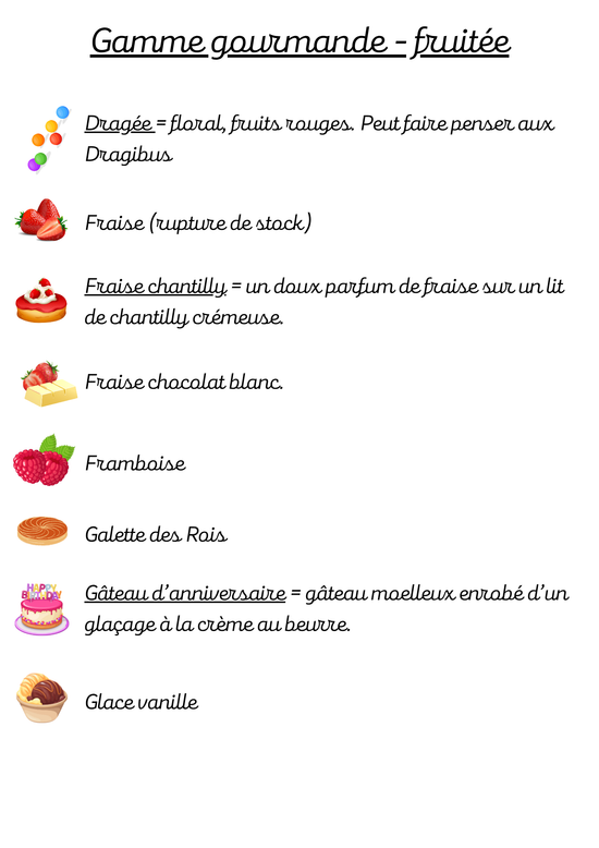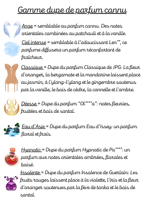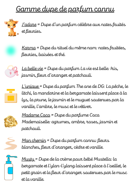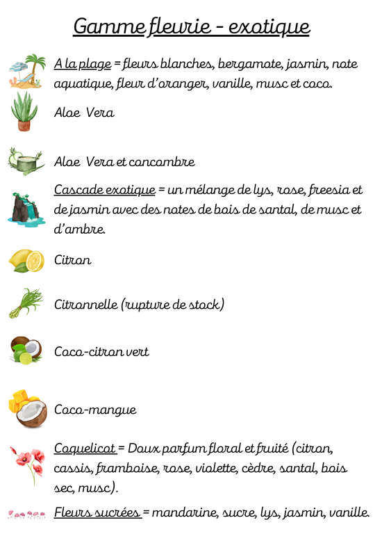 Voici la liste des parfums disponibles sur notre boutique.
