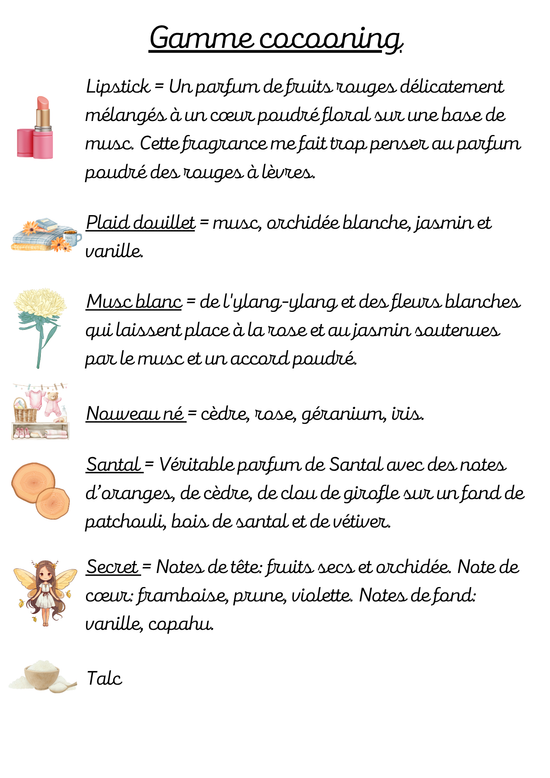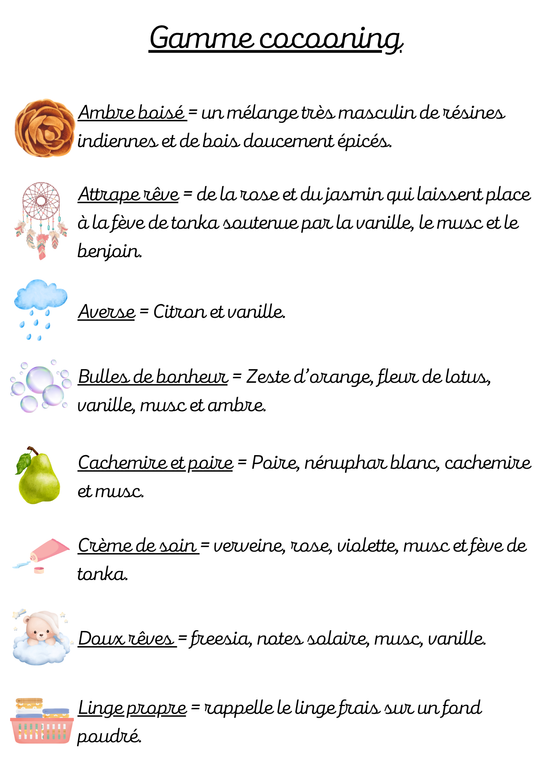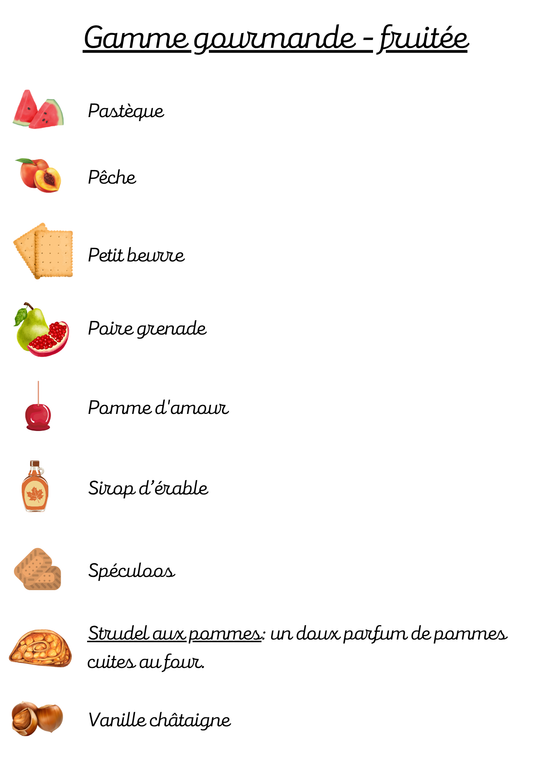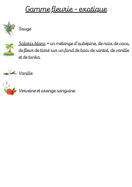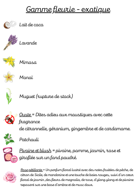 Les parfums suivis d'un astérisque * sont disponibles, pour le moment, pour les bougies.