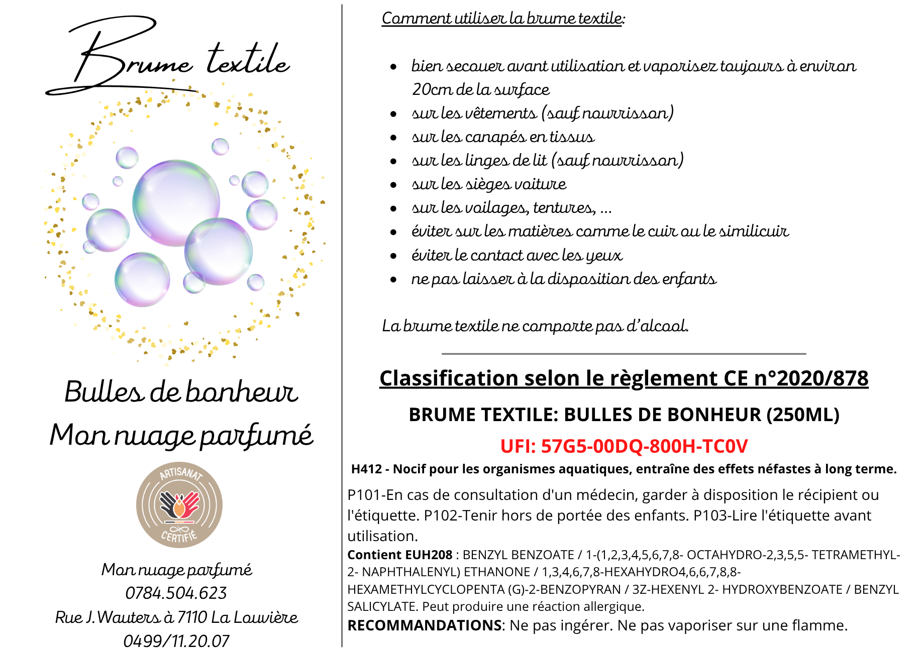 BRUME TEXTILE - BULLES DE BONHEUR (250ML)