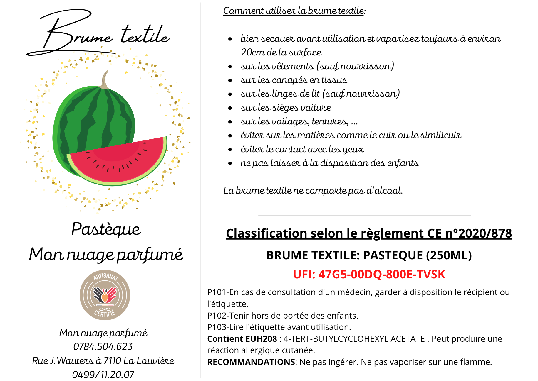 Il est conseillé de vaporiser votre brume textile à environ 20 cm de la surface afin d'éviter des auréoles.