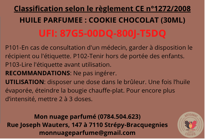 Avec cette fragrance "Cookie chocolat" vous aurez l'impression d'en cuisiner. Un doux parfum aux notes alimentaires, chocolatées et poudrées se répandra dans votre intérieur.