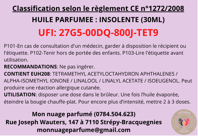 Cette huile parfumée de notre gamme des dupes, diffusera un bouquet floral aux notes d'ylang et de néroli, de jasmin, de violette, de tubéreuse et de musc dans votre intérieur.